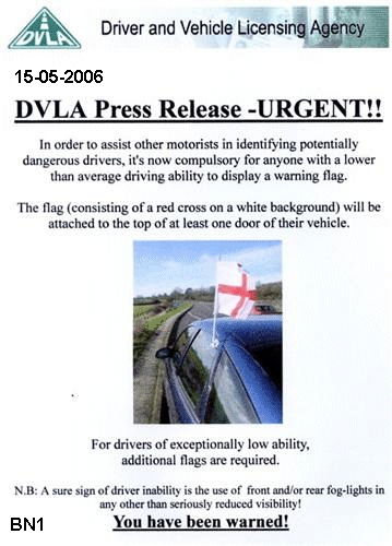 Update: BBC News: Flag drag will boost fuel costs (it seems red and white flags aren’t green).